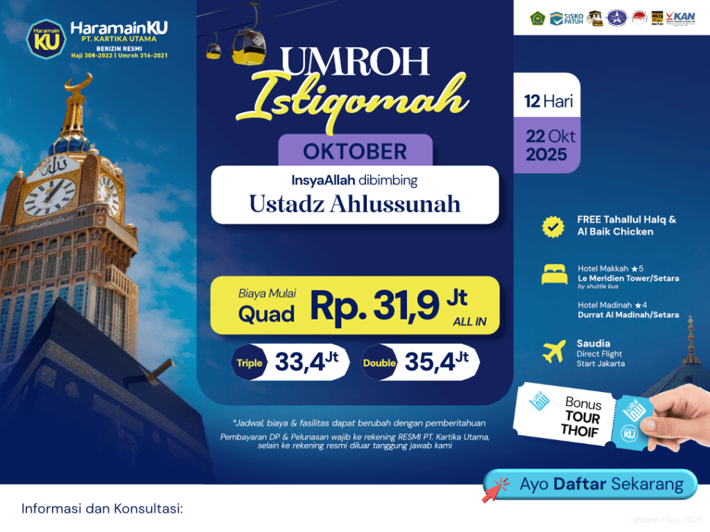 KETENTUAN : Jadwal, Biaya, dan Fasilitas dapan berubah sewaktu-waktu mengikuti kebijakan pemerintah KSA dan Indonesia