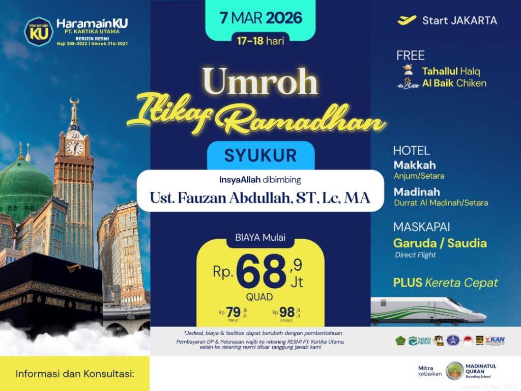 KETENTUAN : Jadwal, Biaya, dan Fasilitas dapan berubah sewaktu-waktu mengikuti kebijakan pemerintah KSA dan Indonesia