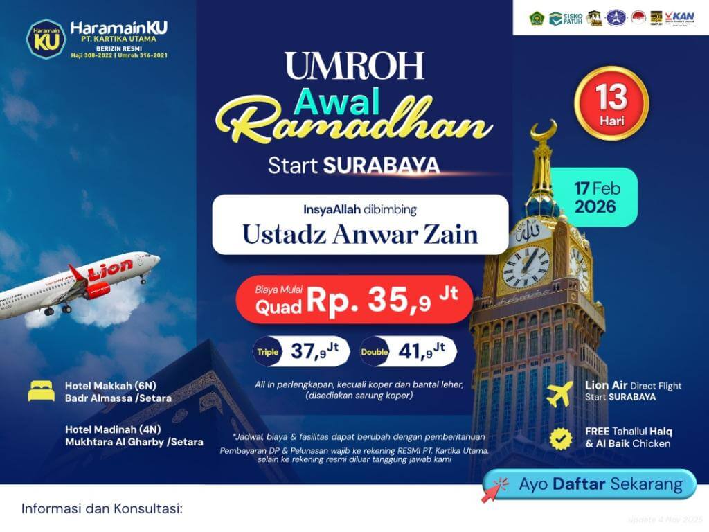 KETENTUAN : Jadwal, Biaya, dan Fasilitas dapan berubah sewaktu-waktu mengikuti kebijakan pemerintah KSA dan Indonesia